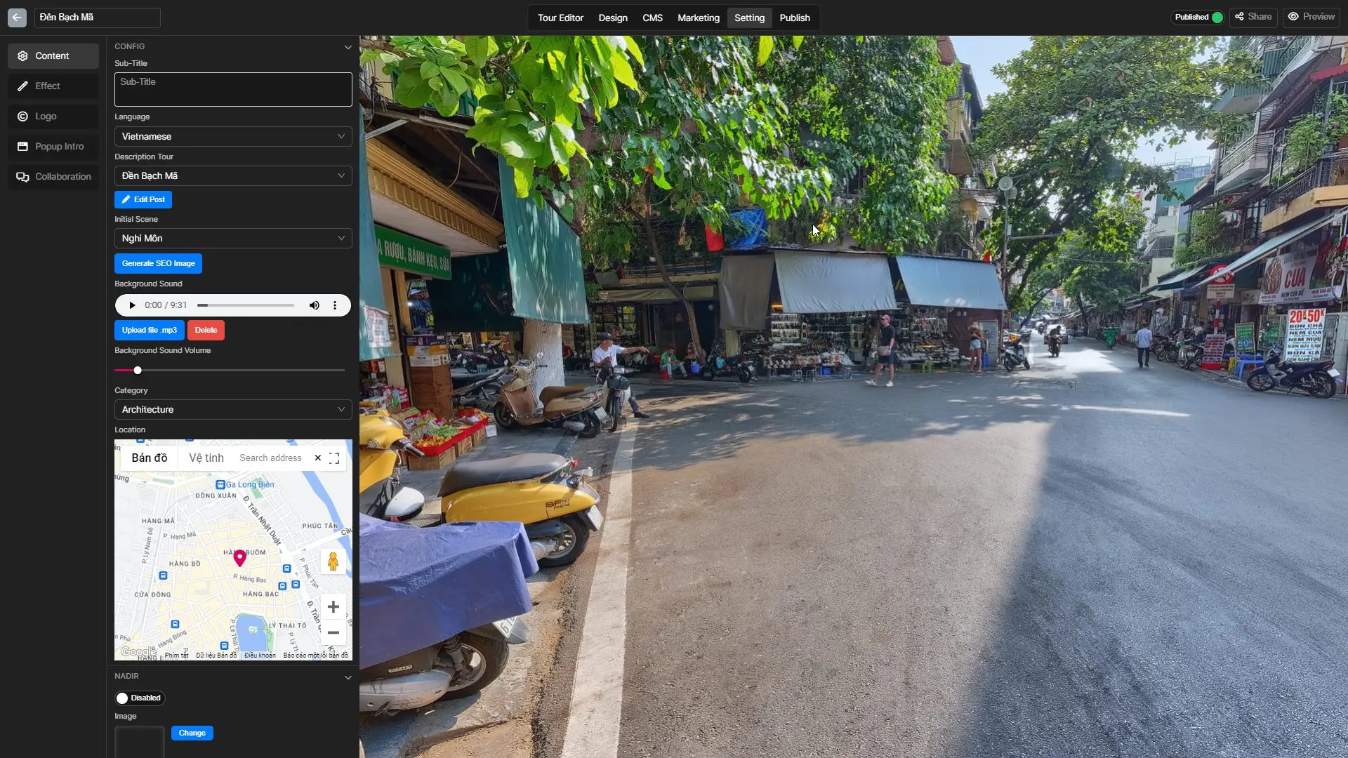 Panoee provides many features that allows you to easily put brand information into Virtual Tour such as: Customer Logo & Copyright, Nadir Logo, WYSIWYG tool, Lead Form Capture, Mini CMS ...